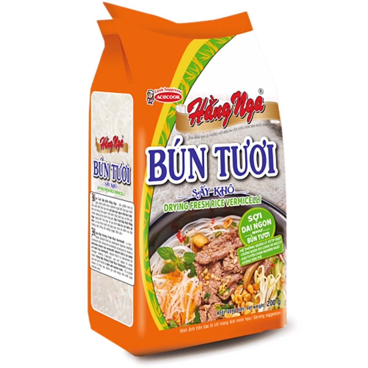"Hang Nga Dried Fresh Rice Vermicelli - made from rice, meticulously selected and processed with advanced techniques to create noodles that are as delicious and chewy as fresh vermicelli, convenient for storage and preparation. Especially, you can adjust the amount used to avoid waste. Hang Nga Dried Fresh Rice Vermicelli brings you and your family a safe and reassuring meal. It's an excellent choice to share joy and enjoy life with your loved ones."
