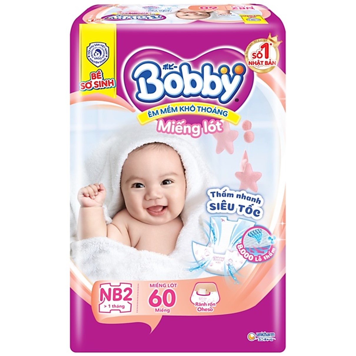 Furthermore, Bobby diapers are equipped with 4000 super-fast absorption holes and a Flexi-fit elastic system to ensure the baby stays comfortable and dry throughout the day. Bobby diapers provide babies with moments of joyful play and deep, restful sleep. To achieve this, the Japanese brand Unicharm has researched and produced diapers with outstanding features such as the flexible Magic Fit system, snugly fitting the baby's belly, soft cotton front waistband, safe for delicate skin, and a 3D super-absorbent surface. Additionally, the improved feature of diamond-absorbing grooves makes Bobby diapers the perfect choice for mothers.