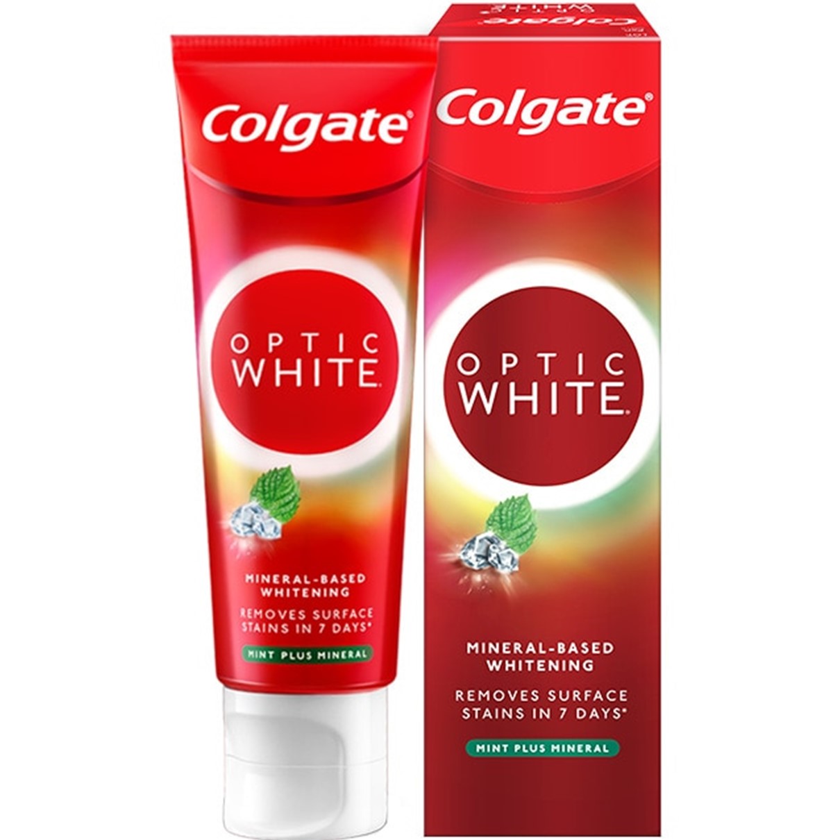 Colgate Optic White Mint Plus Mineral toothpaste (Mineral and Mint) 100g contains Fluor to prevent tooth decay and white mineral crystals to help remove yellow stains in 7 days.
