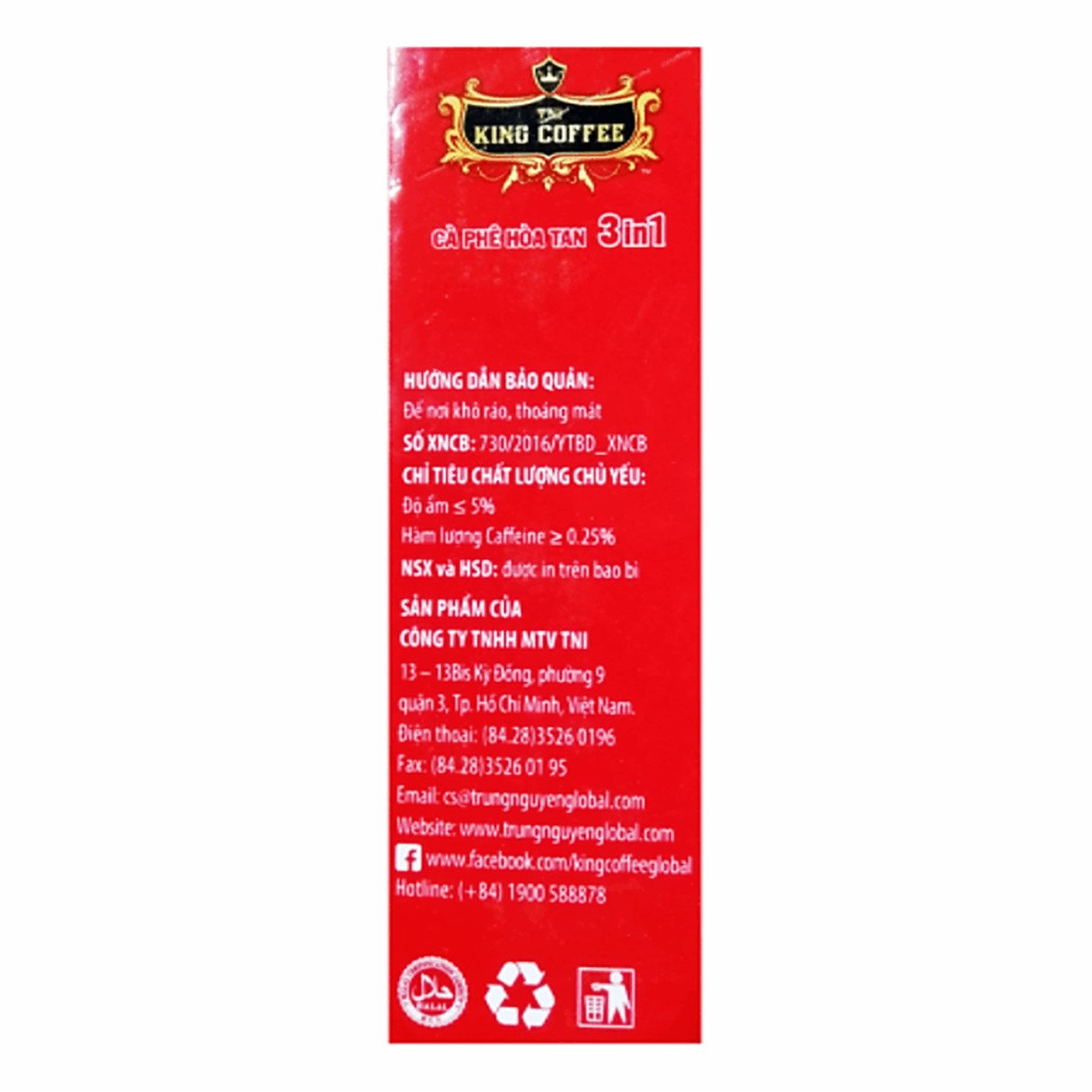 Carefully selected from the finest coffee beans in the renowned land of Buon Me Thuot and processed using state-of-the-art European technology combined with over 20 years of research experience from TNI... We take pride in creating the premium KING COFFEE 3in1 soluble coffee product.