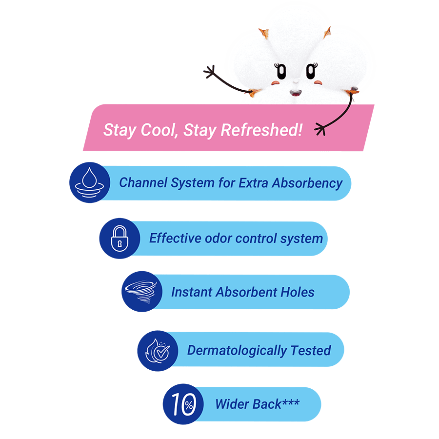 We know periods can be uncomfortable. Therefore, Molped Natural Icy Cool is designed to provide an effective odor control system and the refreshing feeling. With harmonized natural plant extract and menthol. Feel the sensation of icy cool freshness!