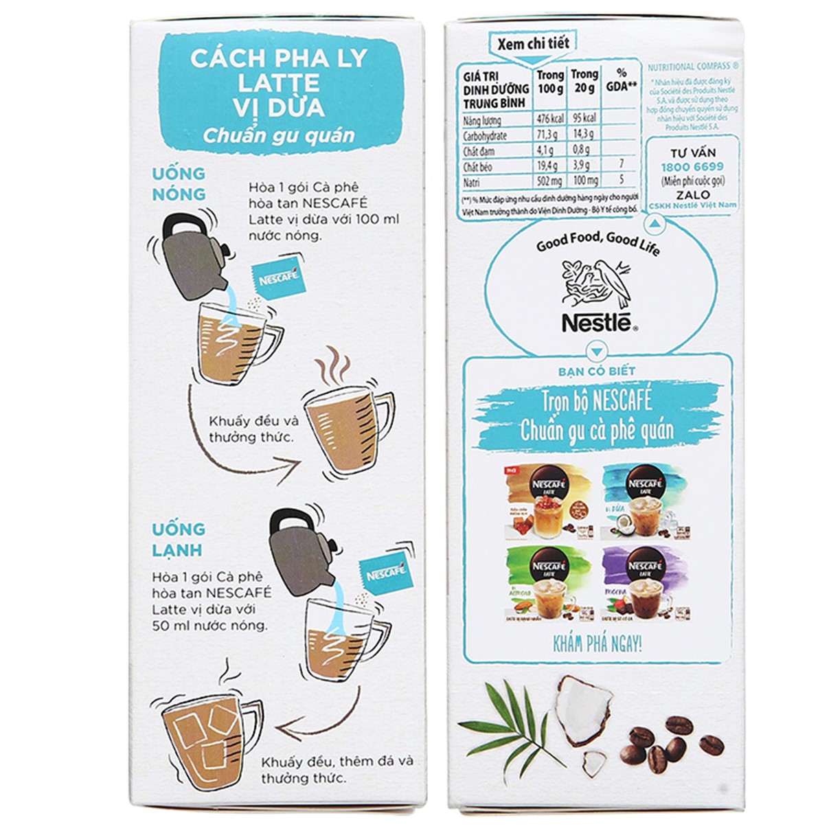 NesCafé Coconut Latte" offers a unique flavor profile, with added richness from finely ground coffee, delivering a sophisticated European-style coffee taste. This instant coffee combines the robust and sweet flavor of milk coffee with the enticing aroma of coconut, providing a delightful and creamy experience.