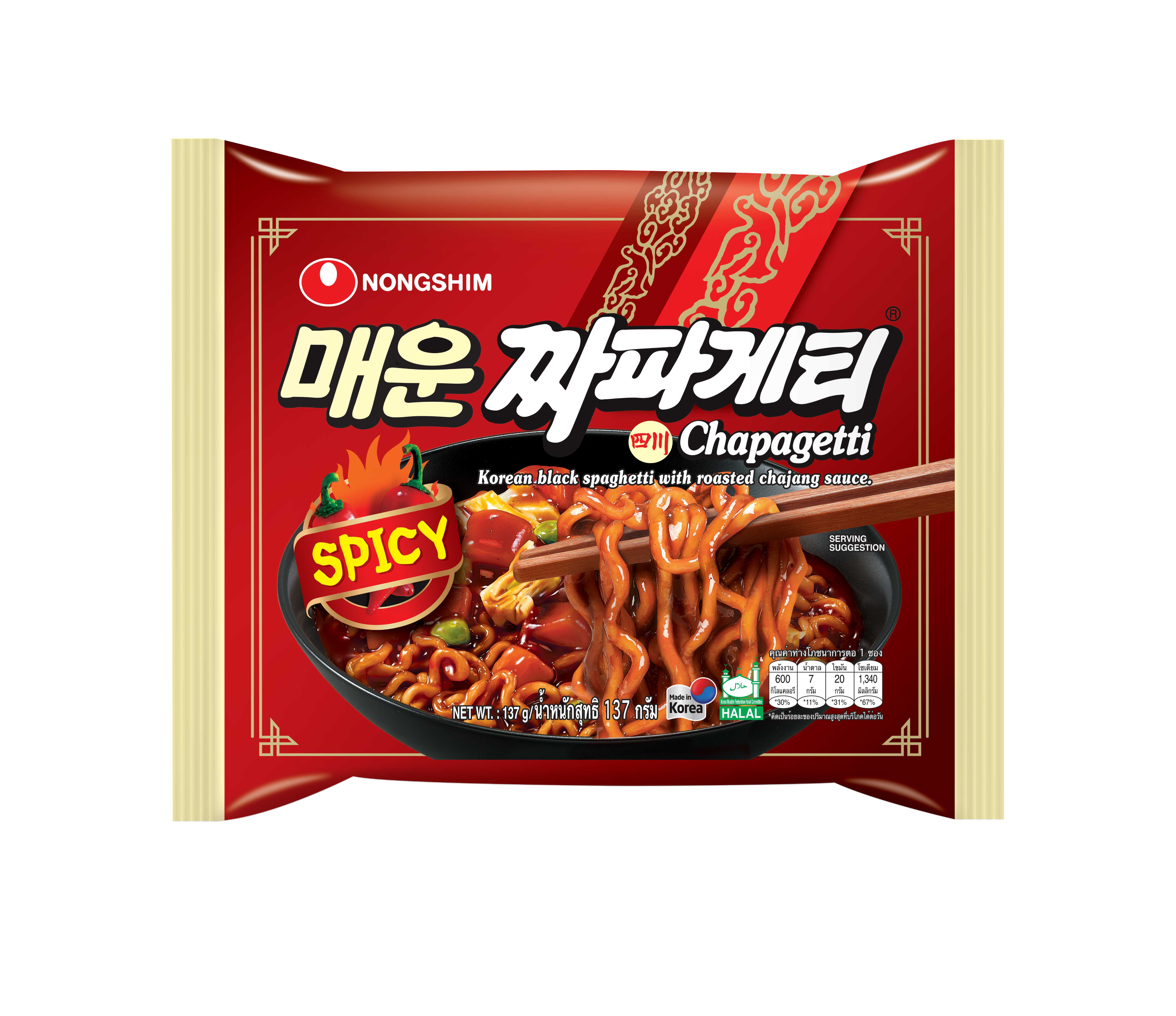 Nongshim Chapagetti Spicy Black Bean Noodles 137g – Fiery Korean Jjajang Flavor