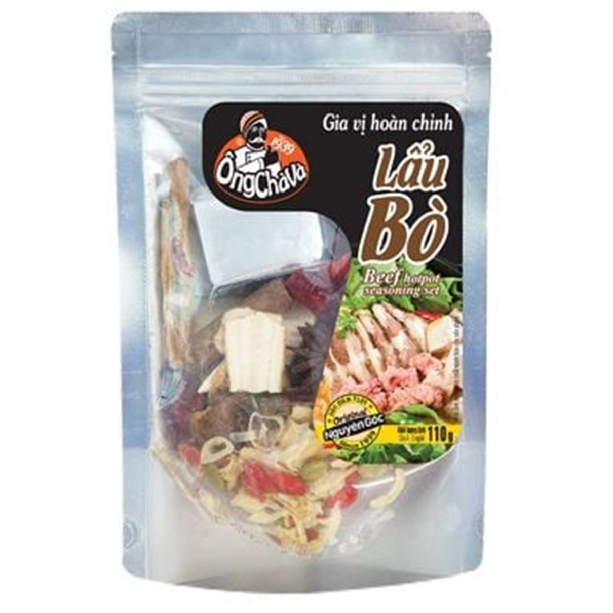 Add the seasoning cubes packet to 3.5-4 liters of beef bone broth and bring to a boil. Add the dry spices and simmer for an additional 10-15 minutes. Add beef, beef tendon, tofu,... Serve with noodles or rice noodles and vegetables according to preference.
