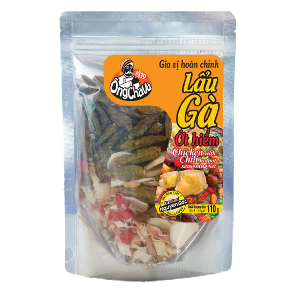 Cut the chicken into pieces, marinate with salt, pepper, and seasoning cubes for about 15 minutes. Stir-fry the chicken in a bit of oil until browned. Add 3.5-4 liters of water and the seasoning cubes packet, bring to a boil. Add the dry spices and simmer for an additional 10-15 minutes. Adjust seasoning to taste. Serve with noodles or rice noodles according to preference.