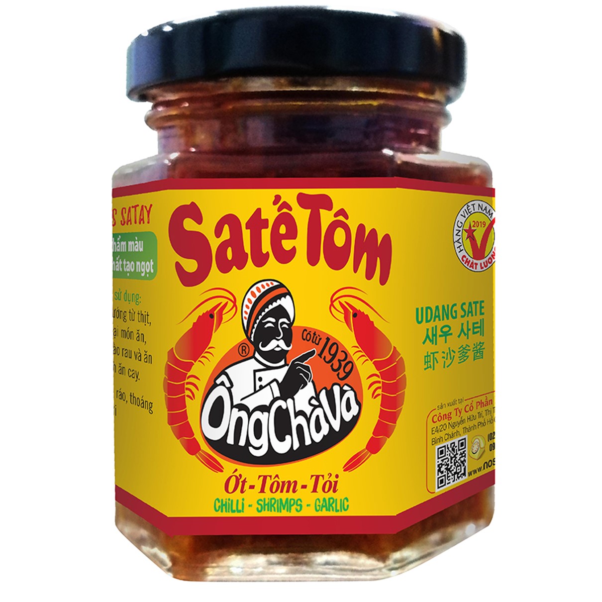 Shrimp (fresh shrimp 33%), chili, refined soybean oil, garlic, sugar, colored cashew nuts, tomato concentrate, onion, soy protein fiber, salt, galangal, preservatives (211, 202) , flavor enhancer (631,627), acidity regulator (330)