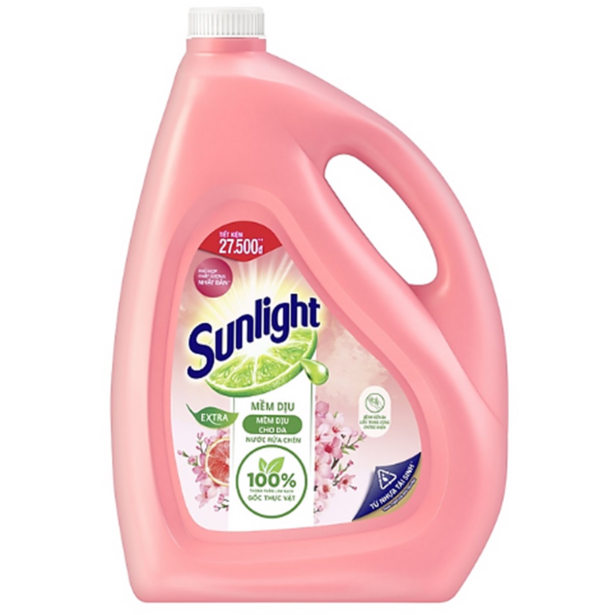 Sunlight Grapefruit & Cherry Blossom Dishwashing Liquid with 100% plant-based cleaning ingredients.