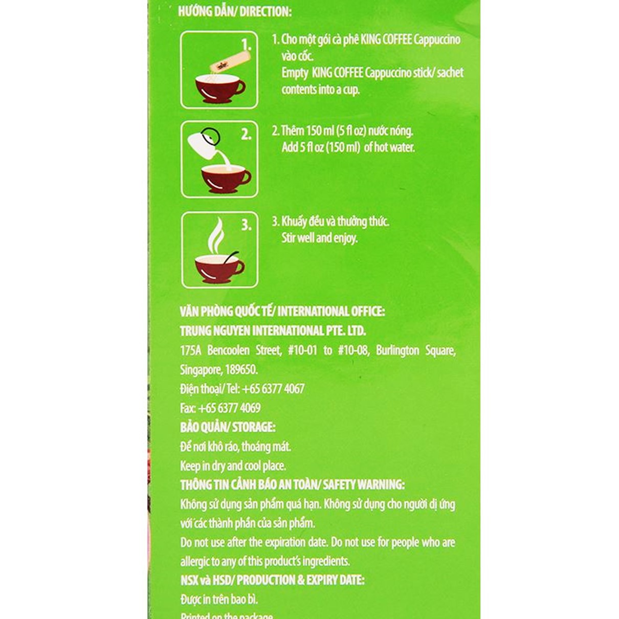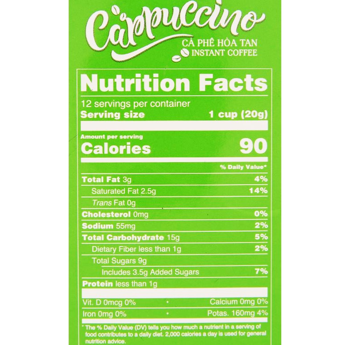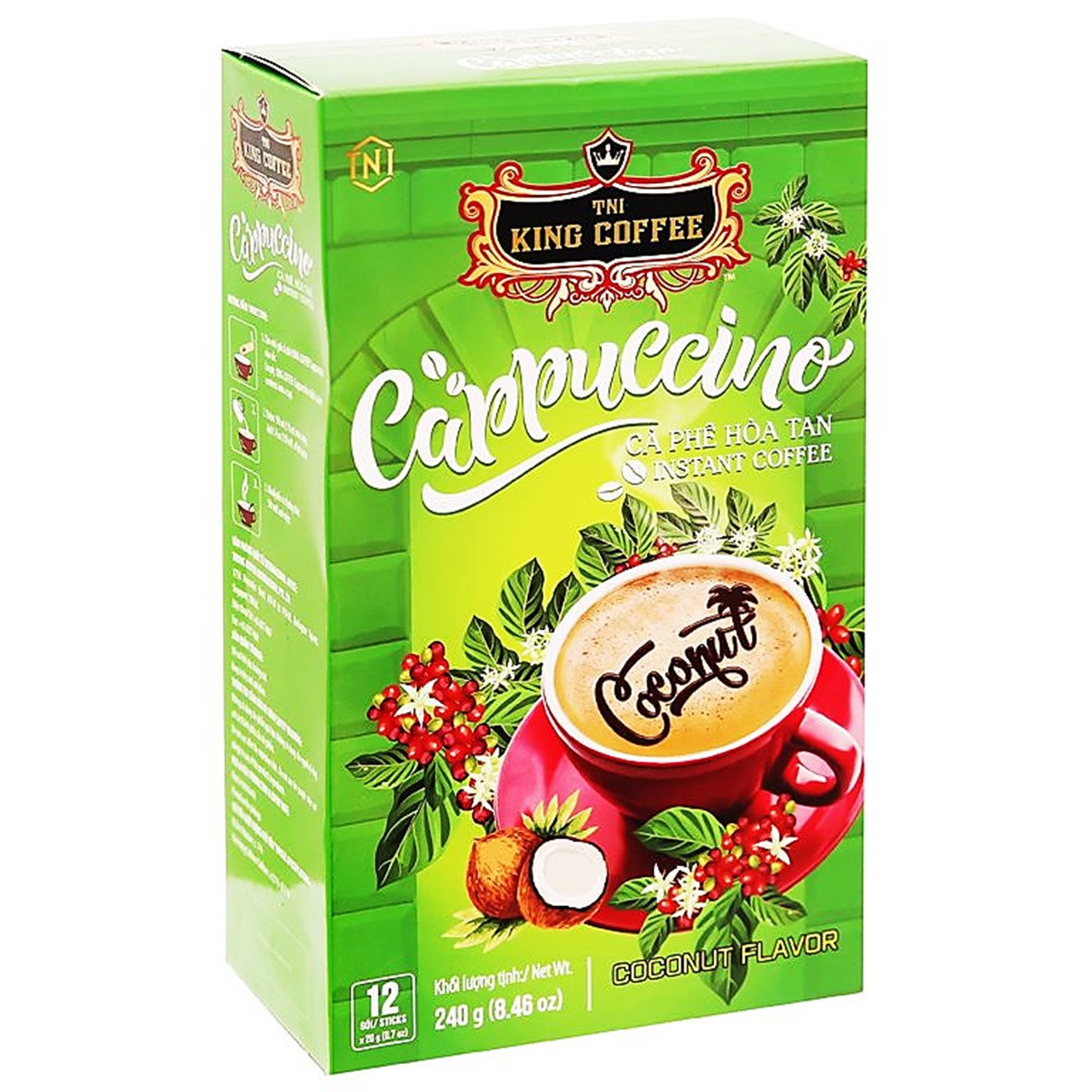 Crafted from meticulously selected Arabica coffee beans blended with coconut-flavored creamer, sugar, and non-dairy creamer. Through a modern process combined with a specialized brewing formula from TNI King Coffee experts, the Cappuccino TNI King Coffee product ensures quality for an incredibly refreshing start to your day.