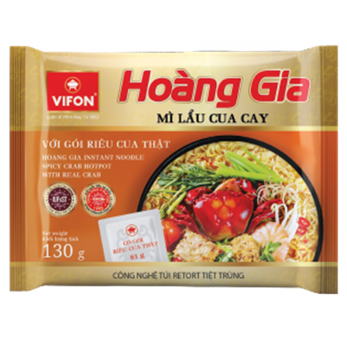 With a commitment not to use synthetic colorants, produced with modern processing technology and a closed process, Hoang Gia Instant Noodle Spicy Crab Hotpot with 100% pure and fresh crab, packaged by closed modern sterilized technology, helping to keep the nutritional content in the crab, with crispy noodles, the rich soup will solve the consumer's time problems but still ensure the right nutrition of "Royal". With the perfect combination of the sweet and cool taste of field crab mixed with the spicy taste of hot pot and the fatty taste of noodles, Hoang Gia Instant Noodle Spicy Crab Hotpot With Real Crab 130g is a great choice for convenience meals.
